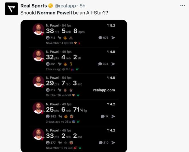 面对鲍威尔如此傲人的表现,美媒都不禁感叹,鲍威尔这是要冲击本赛季的全明星了。